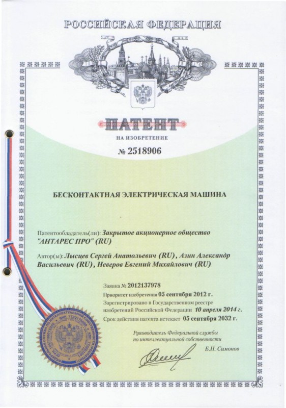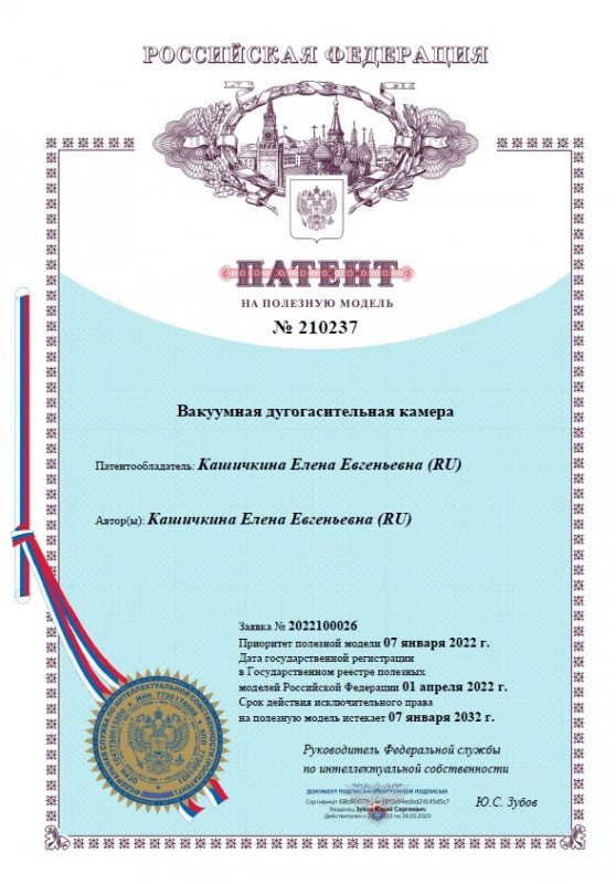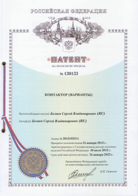 Патент на полезную модель Контактор вакуумный электромагнитный -