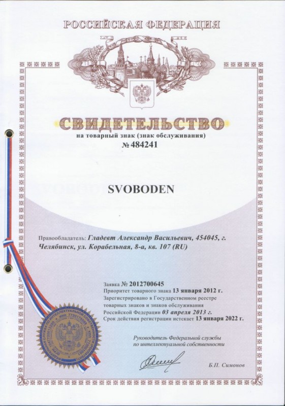 На этой станице представлена только небольшая часть охранных документов, полученных с нашей помощью.